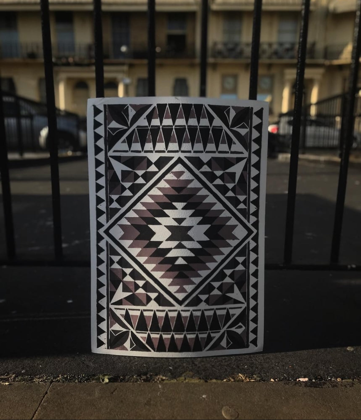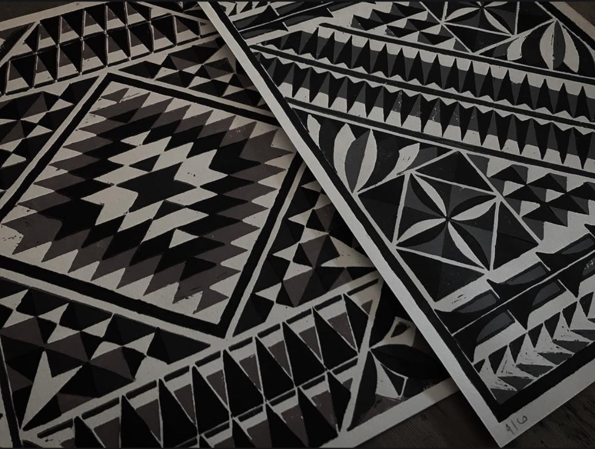 A3 Pacific patterns 3 colors reduction lino print